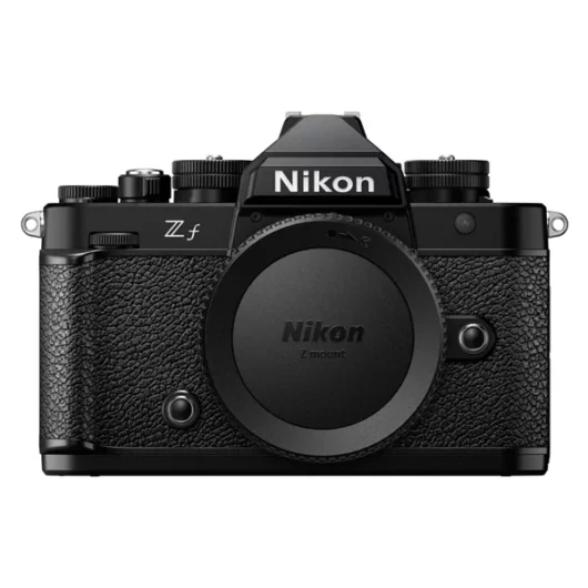Boîtier hybride plein-format Nikon Z f : 24,5 Mpx, EXPEED 7, stabilisation 5 axes 8 stops, vidéo 4K/UHD 10-bit, design rétro inspiré FM2 avec finitions premium.