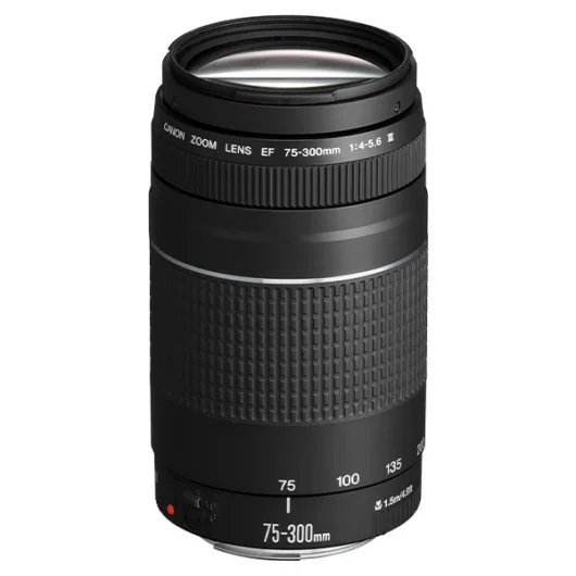 L’objectif Canon EF 75-300 mm f/4-5.6 III est un zoom téléobjectif abordable conçu pour la monture EF Canon, compatible aussi bien avec les appareils plein format qu’APS-C.